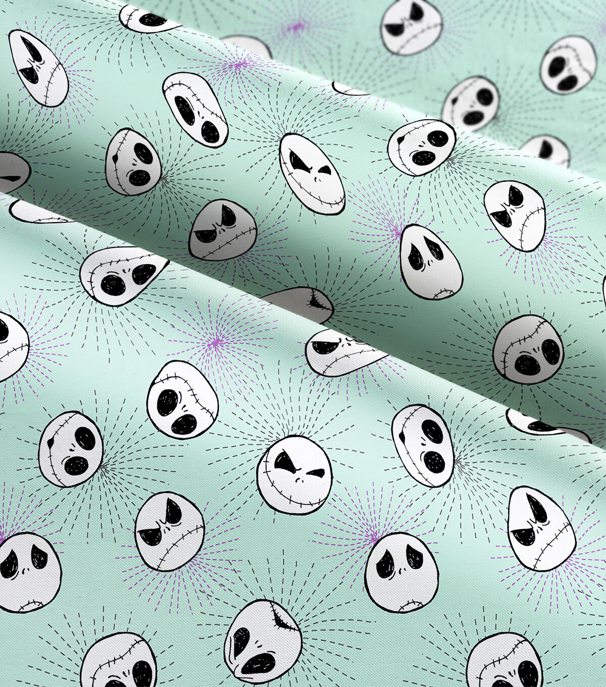Jack Heads on Green Nightmare Before Christmas Baby Cotton Fabric