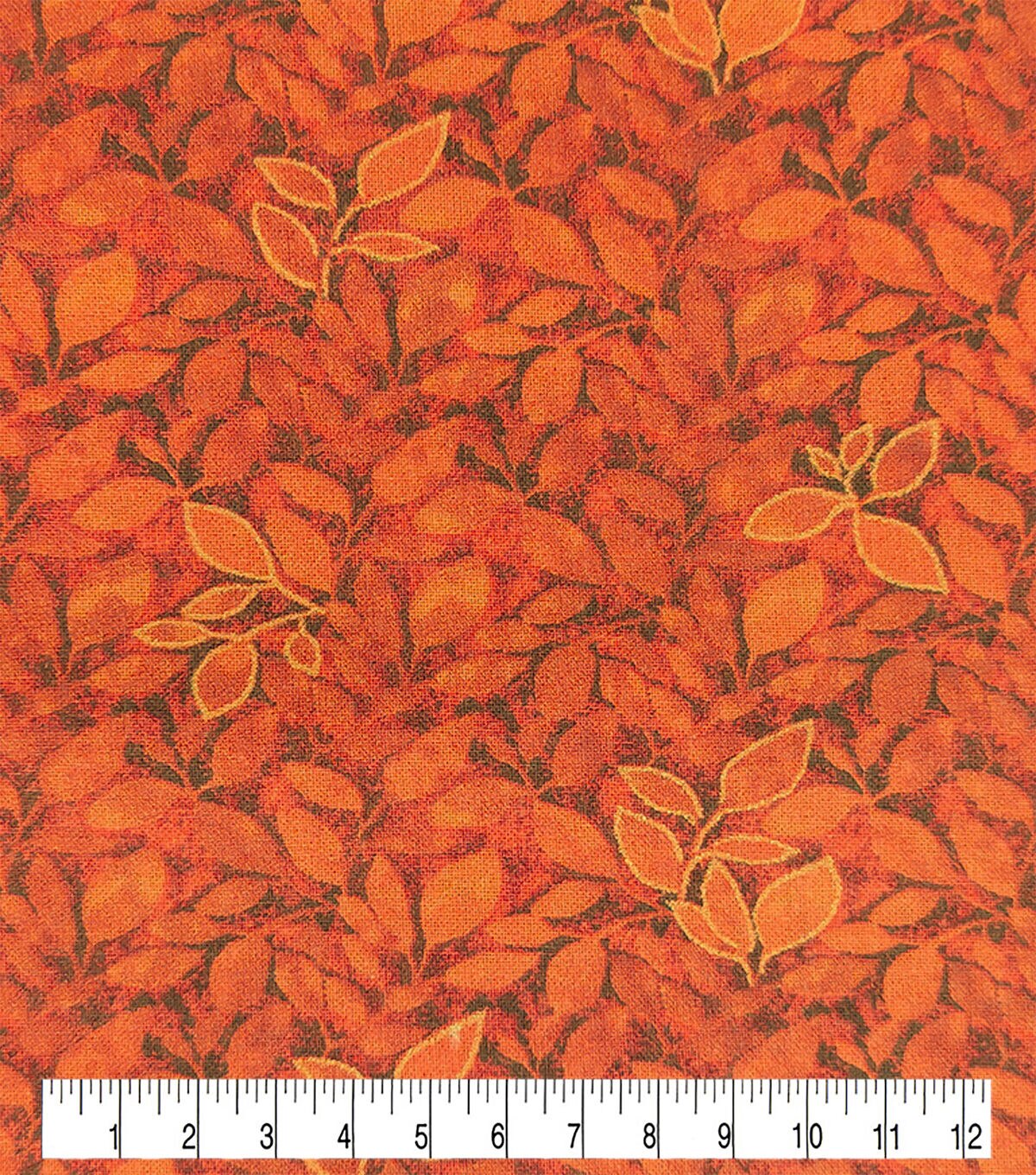 Copper Orange Leaves Fall Print Metallic Cotton Fabric