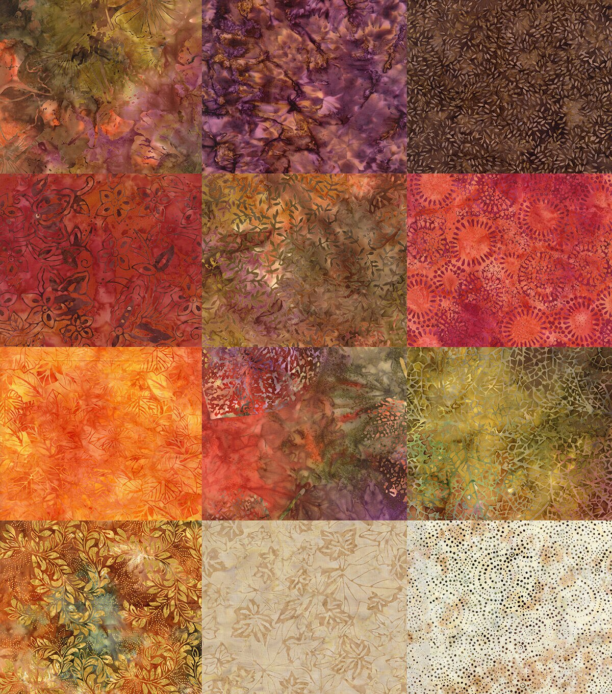 Hi Fashion 18" x 21" Fall Batik Cotton Fat Quarter Bundle 12pc