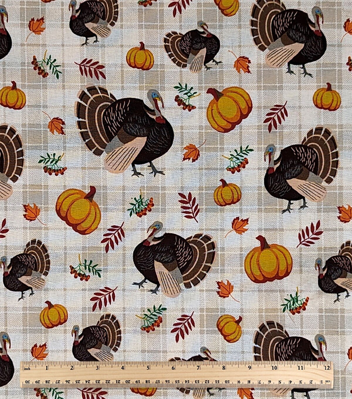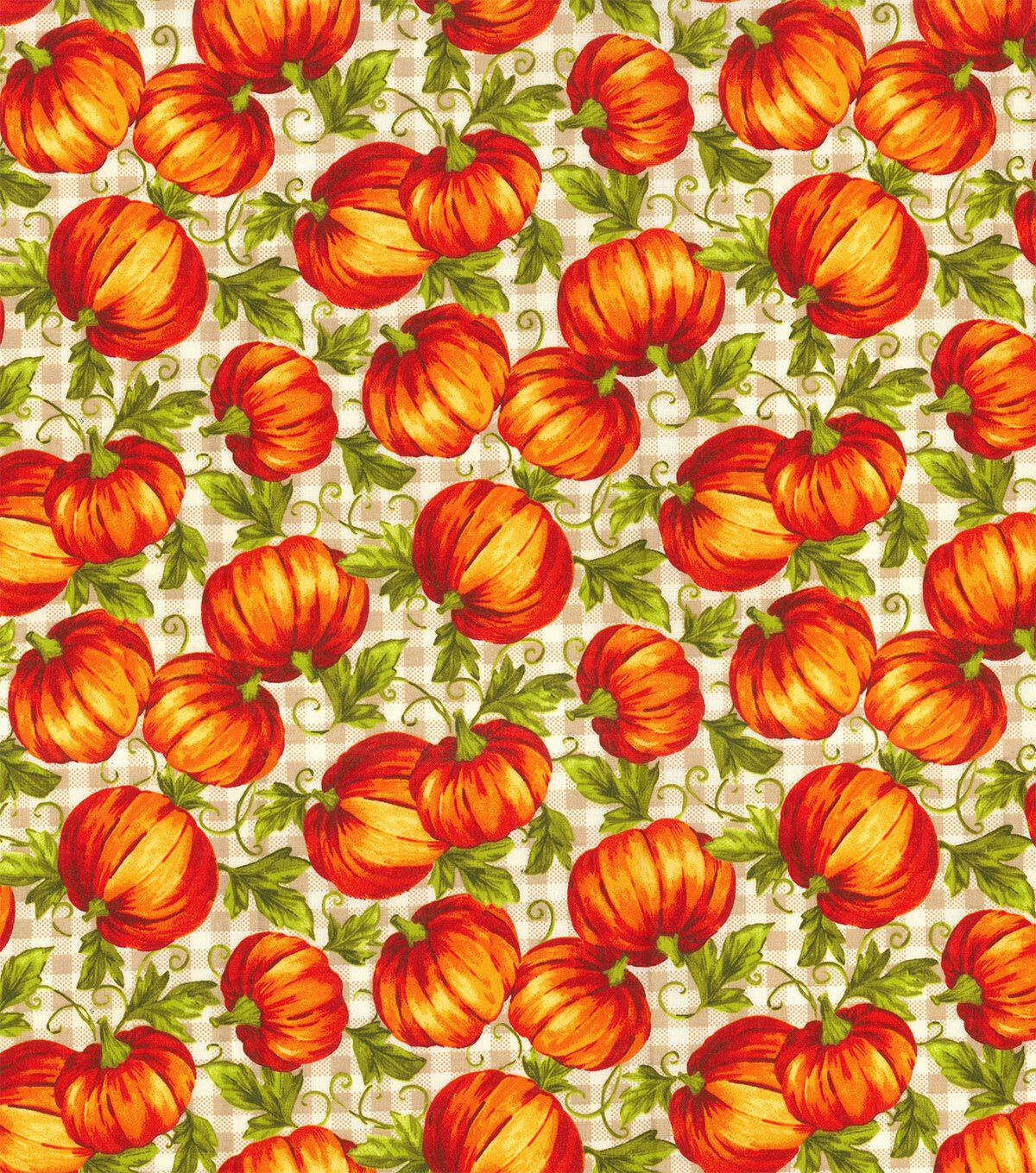 Fabric Traditions Pumpkins On Gingham Check Harvest Cotton Fabric