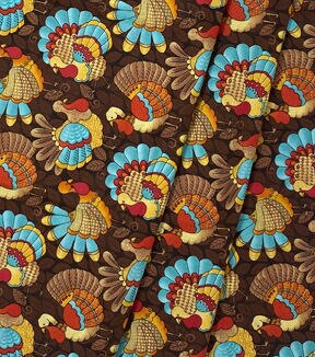Pumpkin Pies On Teal Fall Print Cotton Fabric