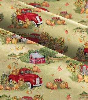 18" x 21" Pumpkin Pies On Teal Cotton Fabric Quarter 1pc