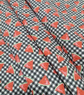 Watermelon On Black Plaid Novelty Cotton Fabric