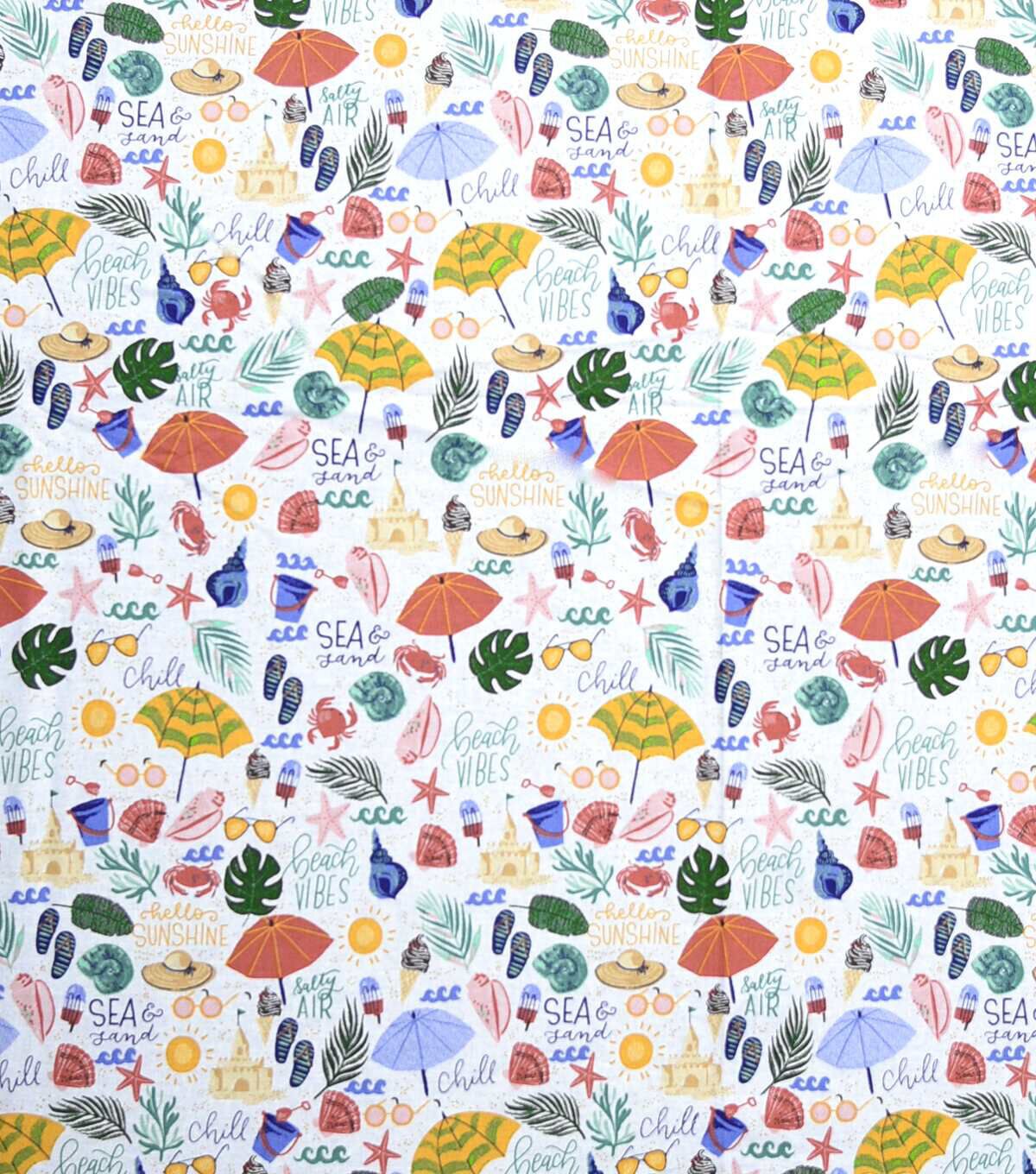 Sea And Sand Beach Print Novelty Cotton Fabric