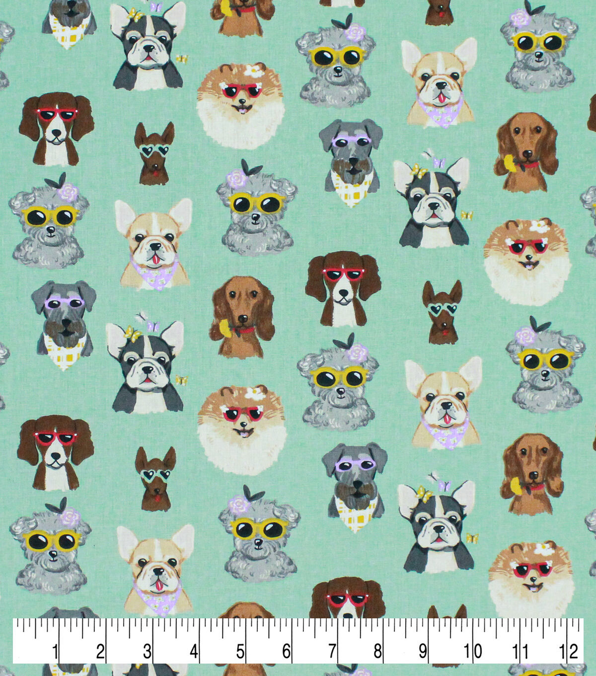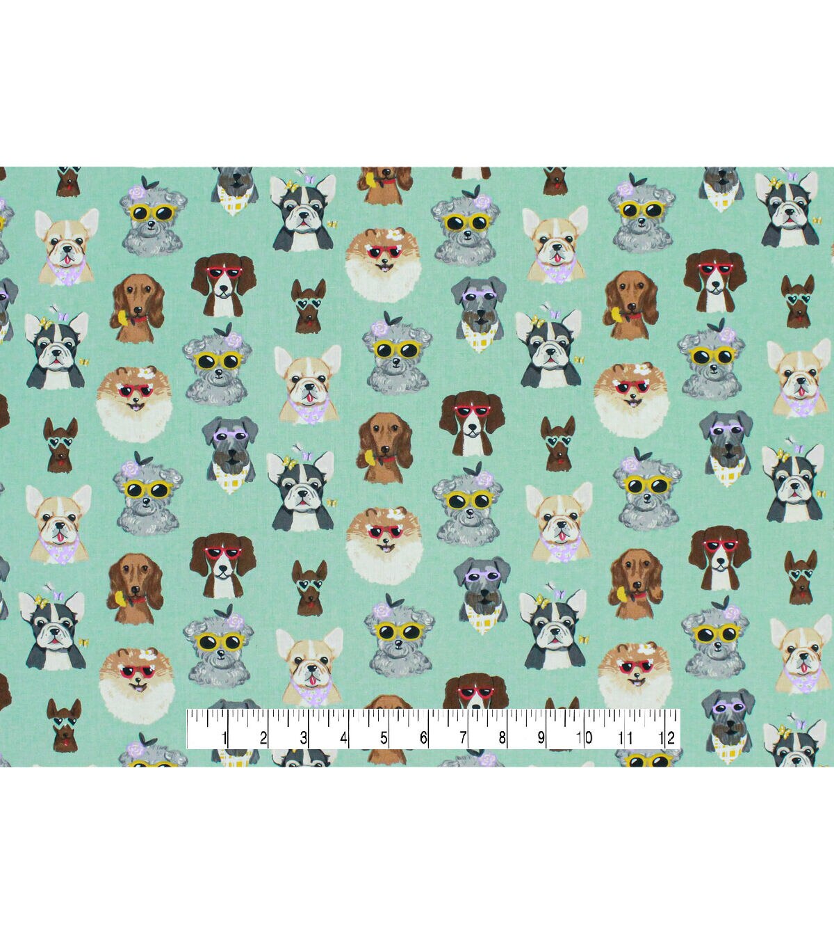 Dogs In Sunglasses Mint Novelty Cotton Fabric