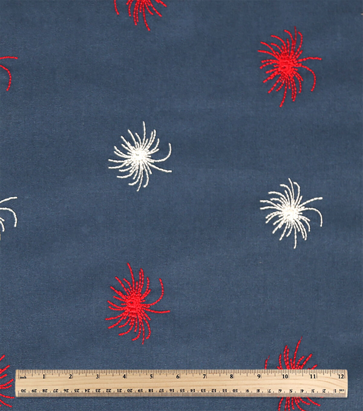 Blue Embroidered Firework Patriotic Cotton Fabric