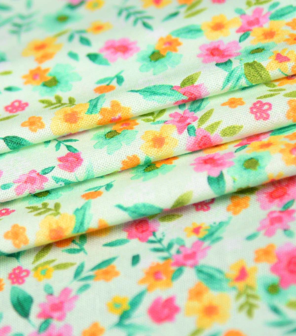 Floral on Light Green Easter Cotton Fabric