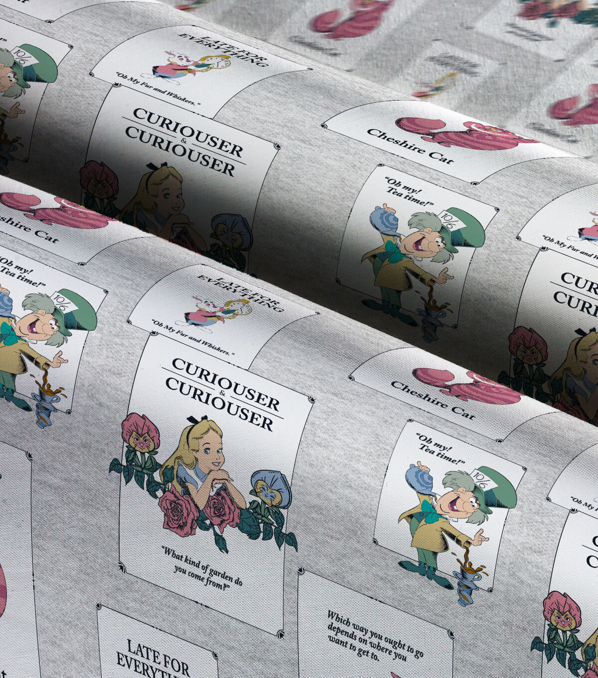 Disney Alice In Wonderland Classic Vintage Cards on Gray Cotton Fabric