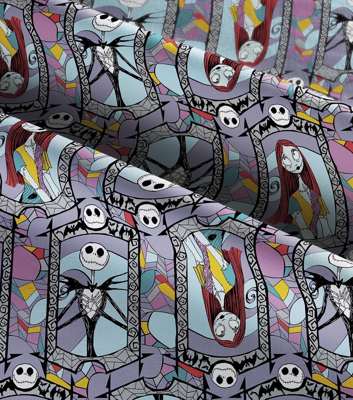 Jack & Sally Stained Glass Nightmare Before Christmas Cotton Fabric