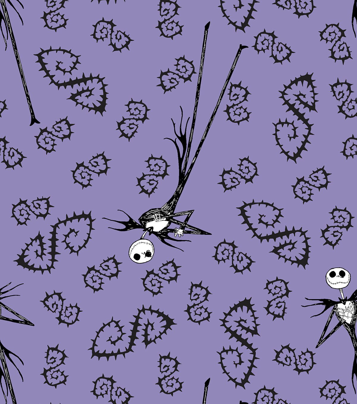Disney Jack & Thorns on Purple Nightmare Before Christmas Cotton Fabric