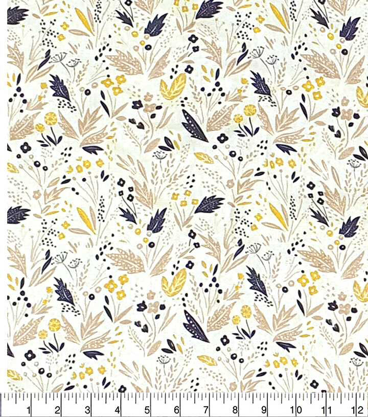 Heather Mclaughlin Yellow Pink Leaves & Floral Premium Cotton Fabric
