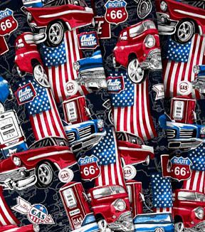 Fabric Traditions Car Travel Americana on Black Novelty Cotton Fabric