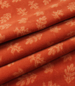 Orange Leaves Anti Pill Fleece Fabric