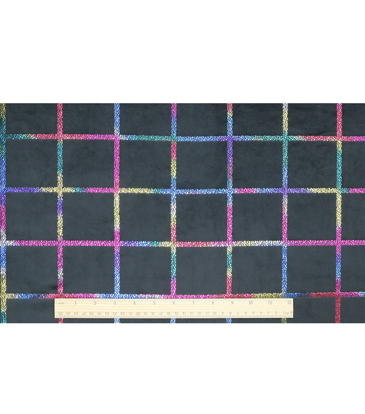 Rainbow Pride Grid on Black Pure Plush Fleece Fabric