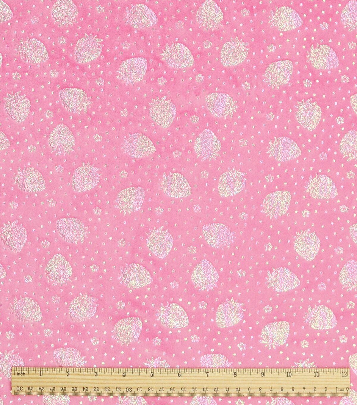 Foil Summer Strawberries on Pink Pure Plush Fleece Fabric
