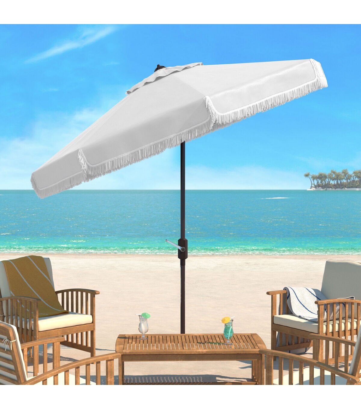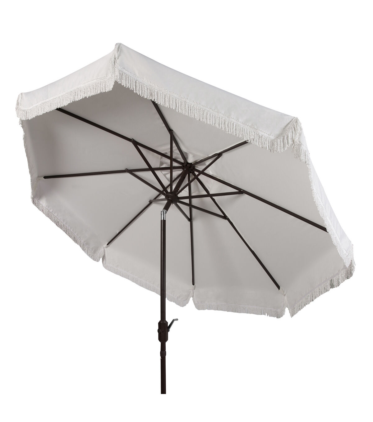 Safavieh 9' Milan White Fringe Push Button Tilt Patio Umbrella