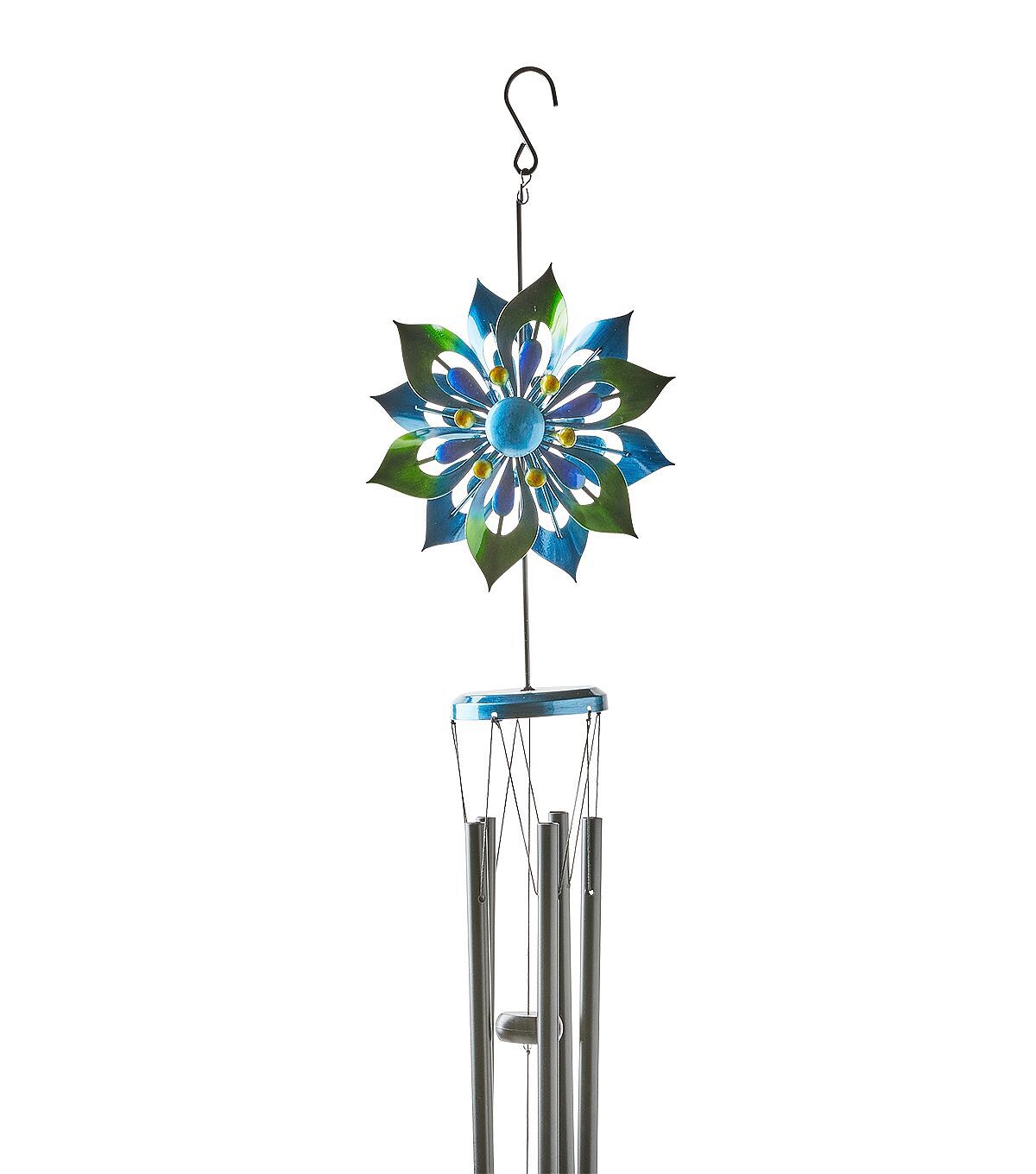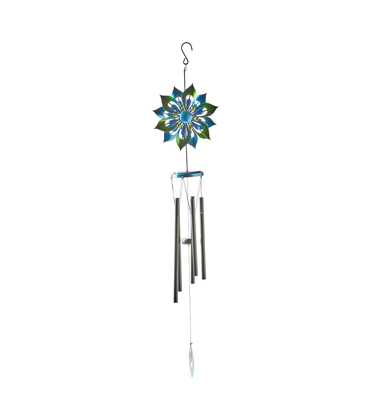 39" Spring Blue Iron Spinning Flower Windchime by Place & Time