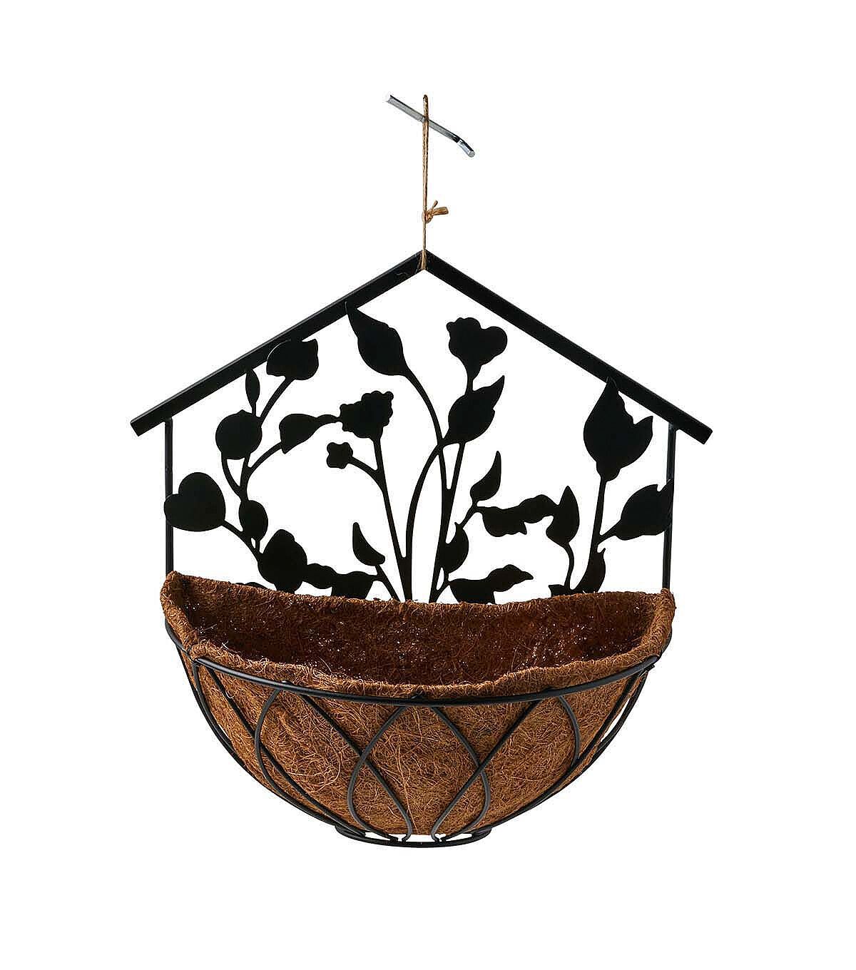 16" Spring Black Iron Floral Wall Planter by Place & Time