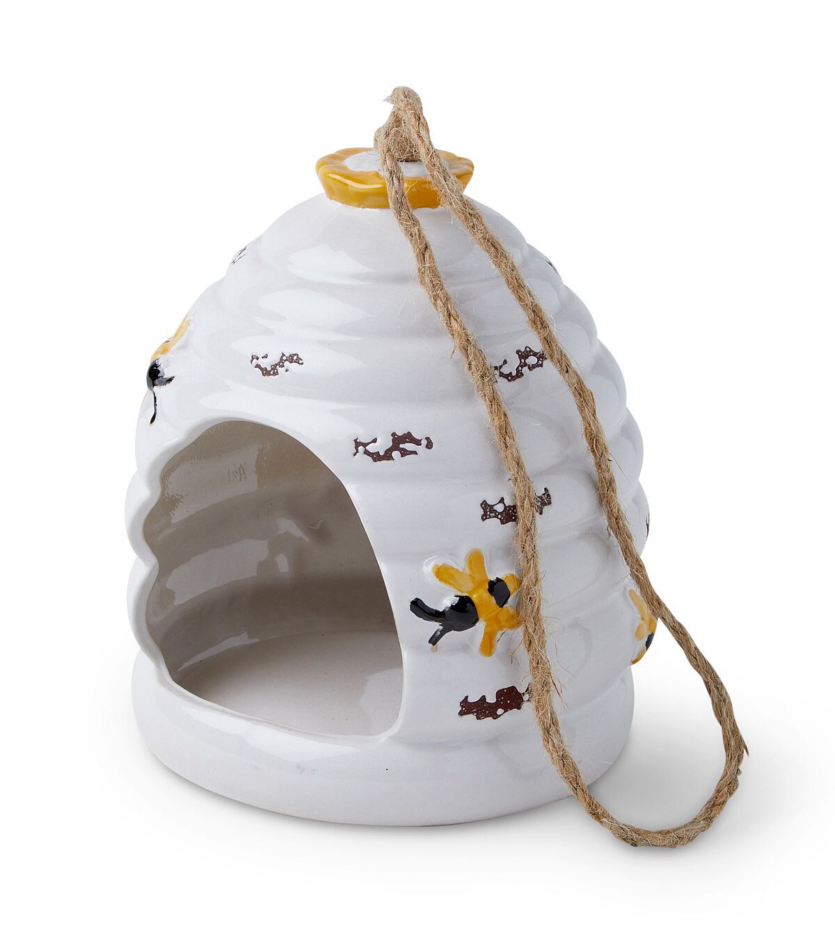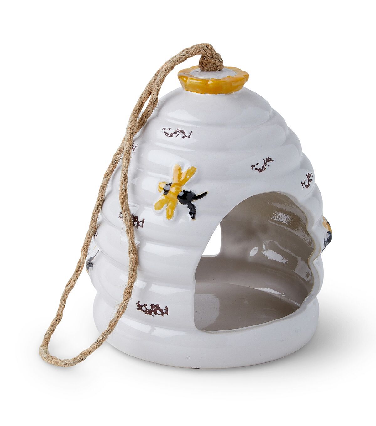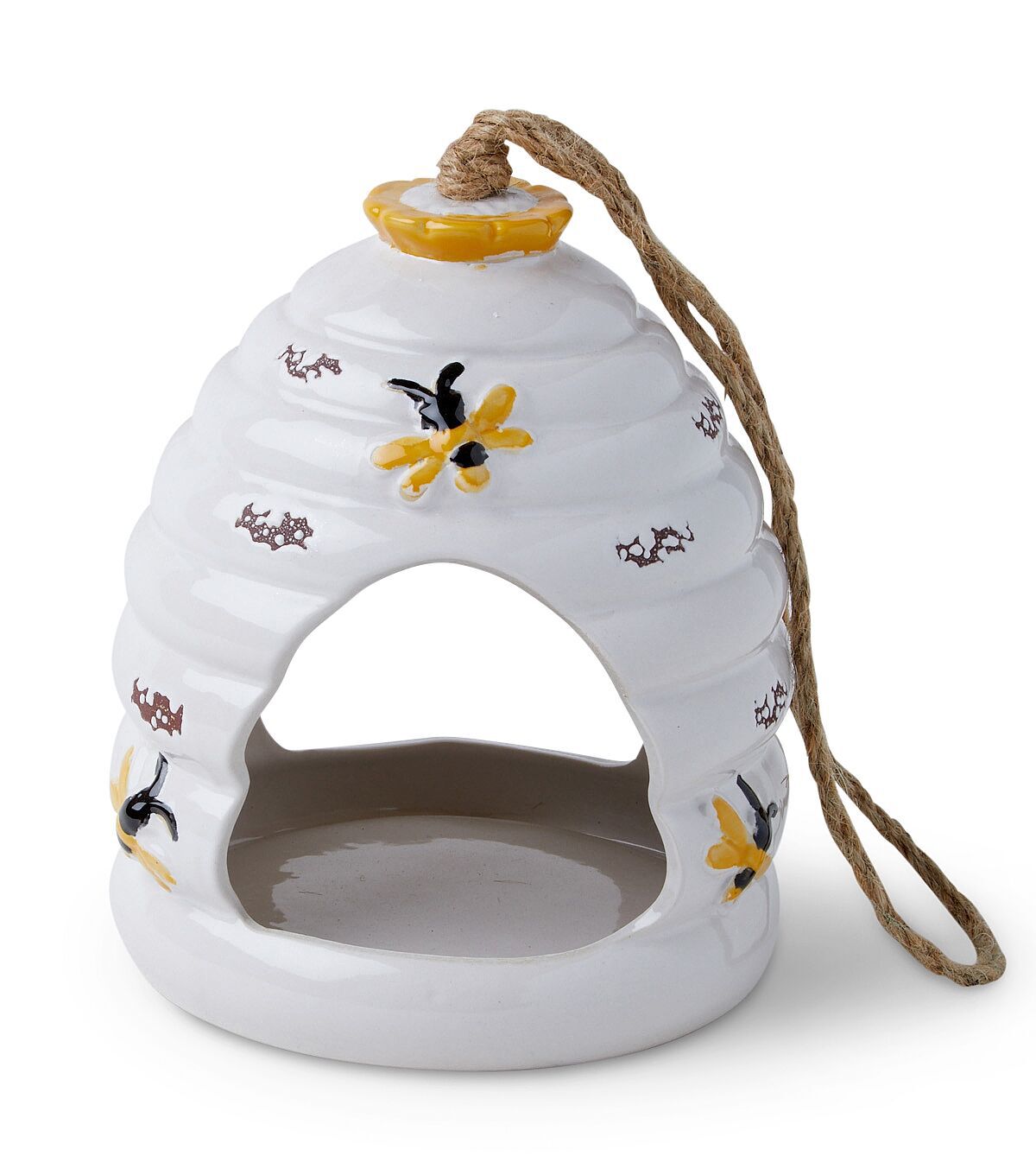7" Spring White Ceramic Beehive Bird Feeder by Place & Time