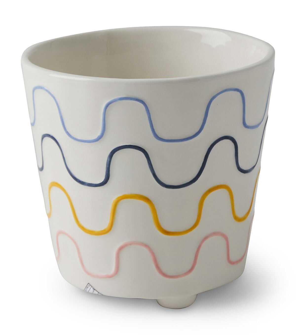 6" Spring Blue & Yellow Lines on White Ceramic Planter by Place & Time