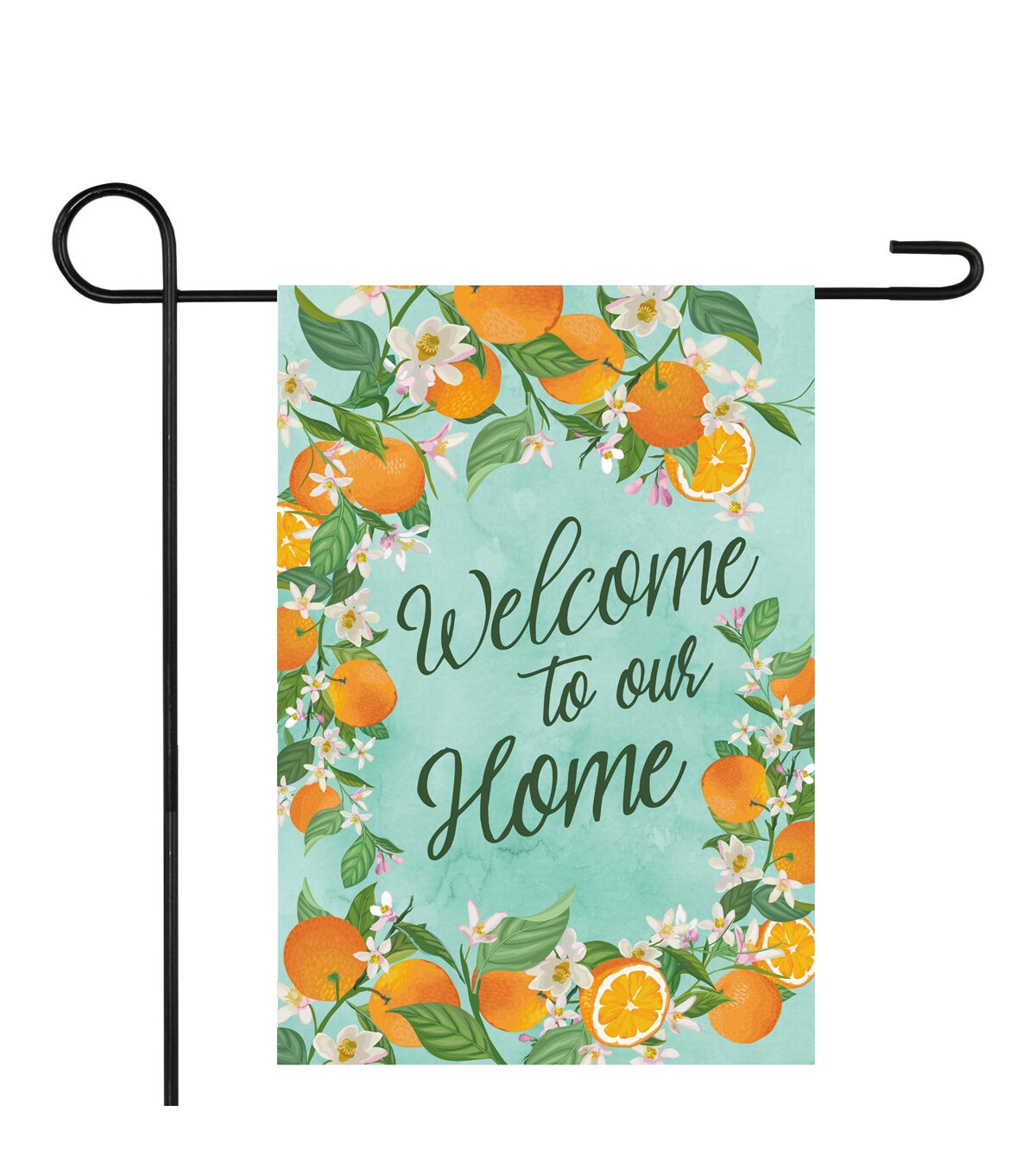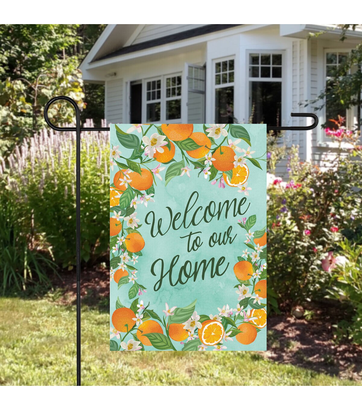 Northlight 12.5" x 18" Welcome to Our Home Oranges Outdoor Garden Flag