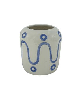 5" Spring Blue Squiggle Lines on White Planter by Place & Time