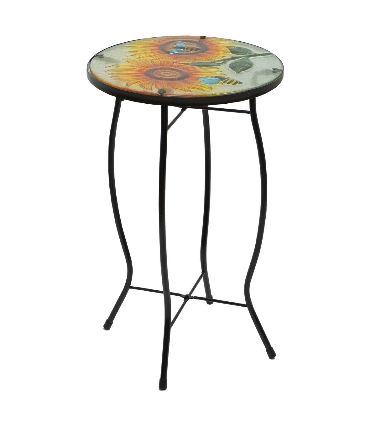Northlight 19" Sunflower & Bumblebee Glass Patio Side Table