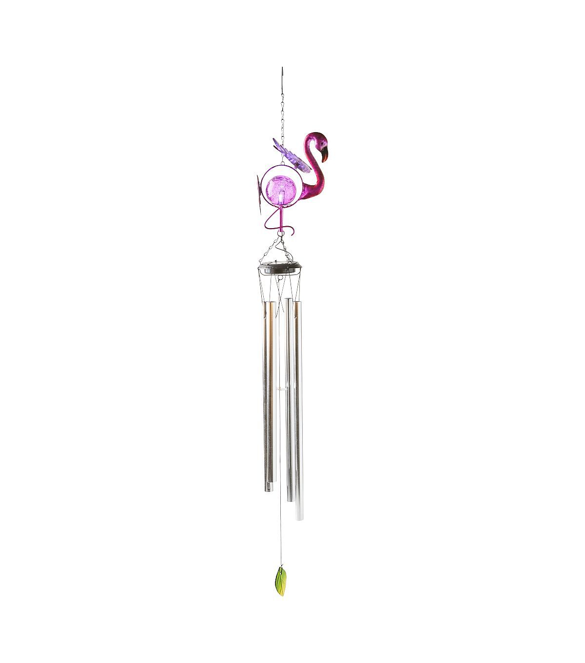 41" Spring Pink Iron Flamingo Solar Windchime by Place & Time