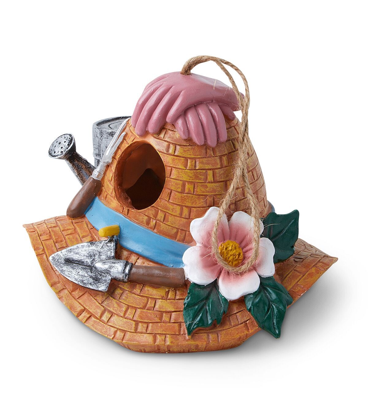 12" Spring Brown Sun Hat Gardening Supplies Birdhouse by Place & Time