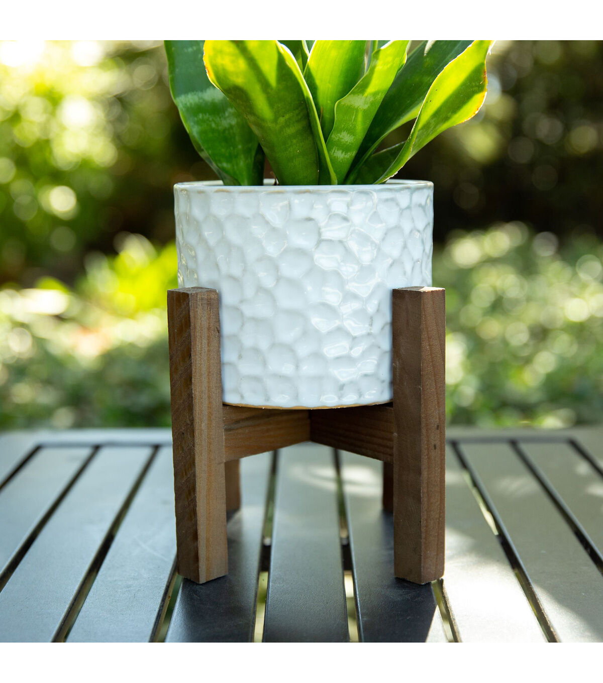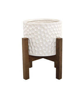 Flora Bunda 5.5" Cream Beehive Ceramic Planter on Wood Stand