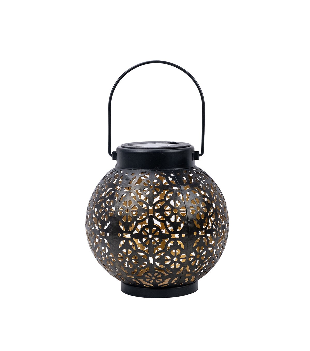 6" Summer Black LED Iron Cut Out Solar Lantern by Place & Time