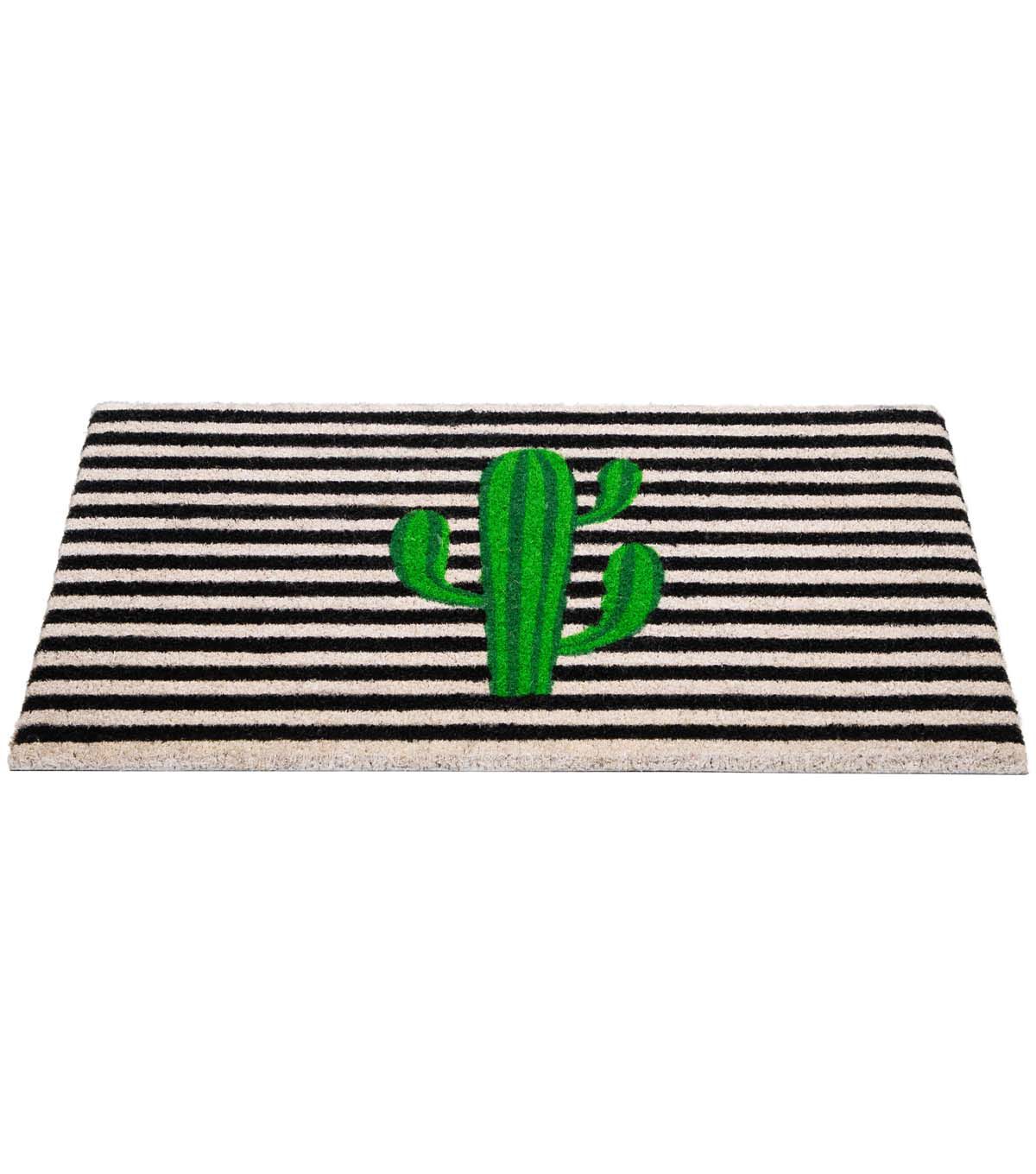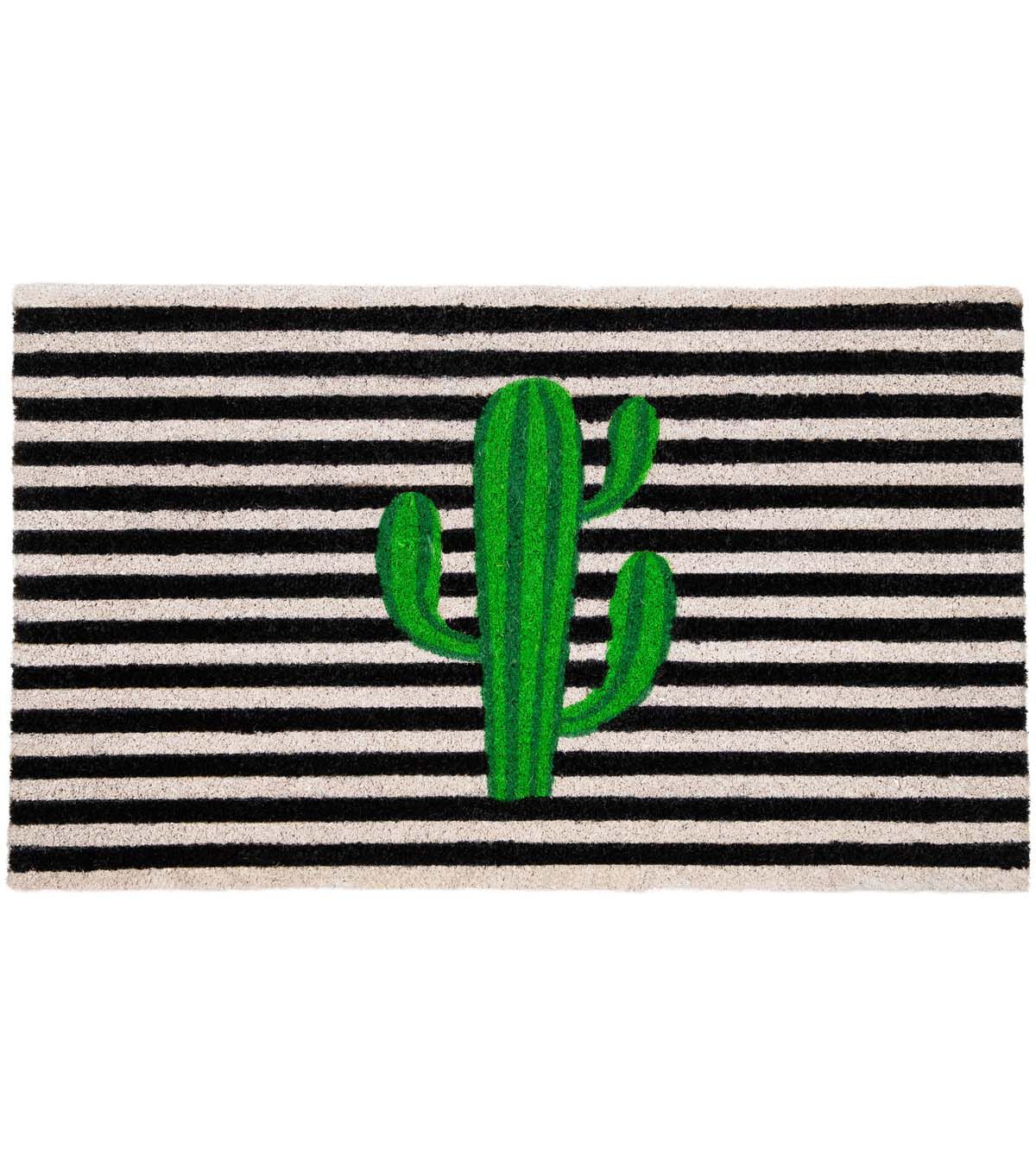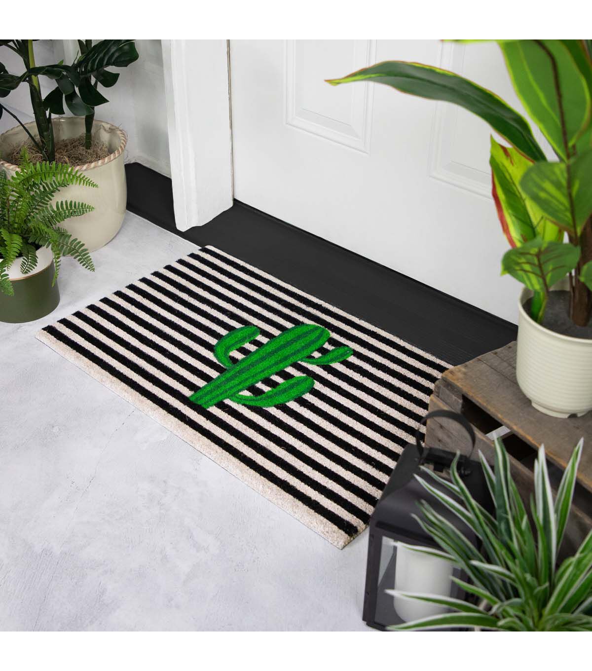 Northlight 18" x 30" Summer Green Cactus on Striped Coir Doormat