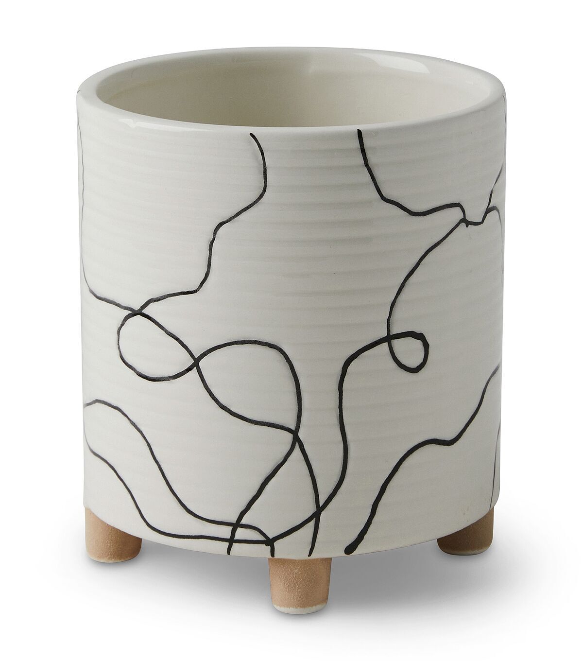 6" Spring Black Squiggle Lines on White Planter by Place & Time