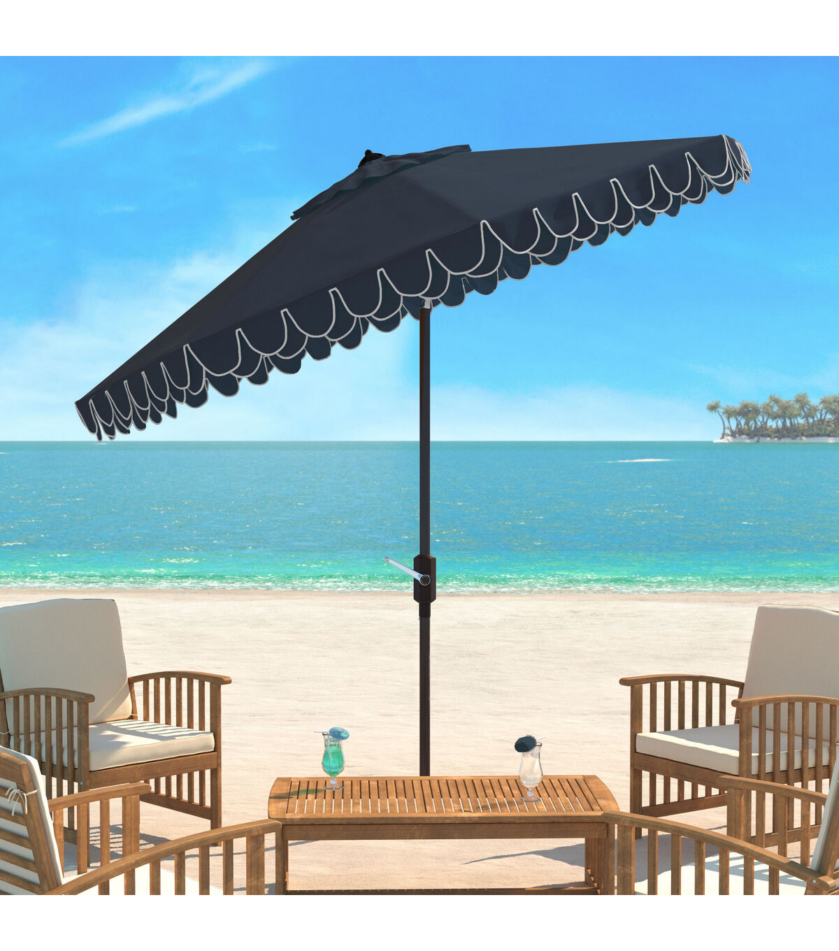 Safavieh 9' UV Resistant Navy & White Elegant Auto Tilt Patio Umbrella