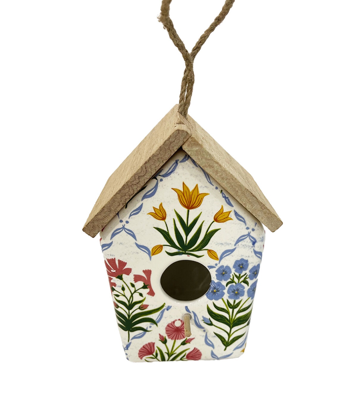 8" Spring White & Blue Ceramic Birdhouse by Place & Time
