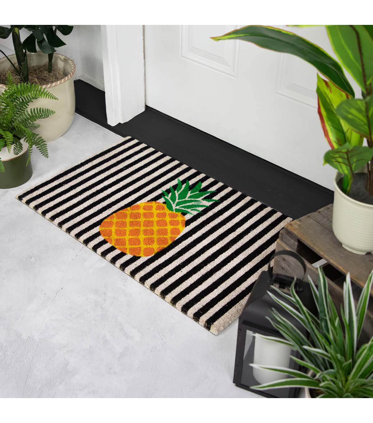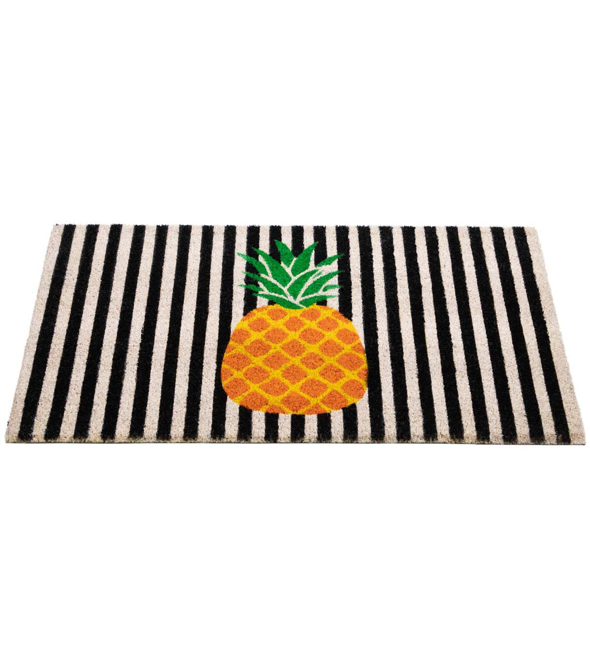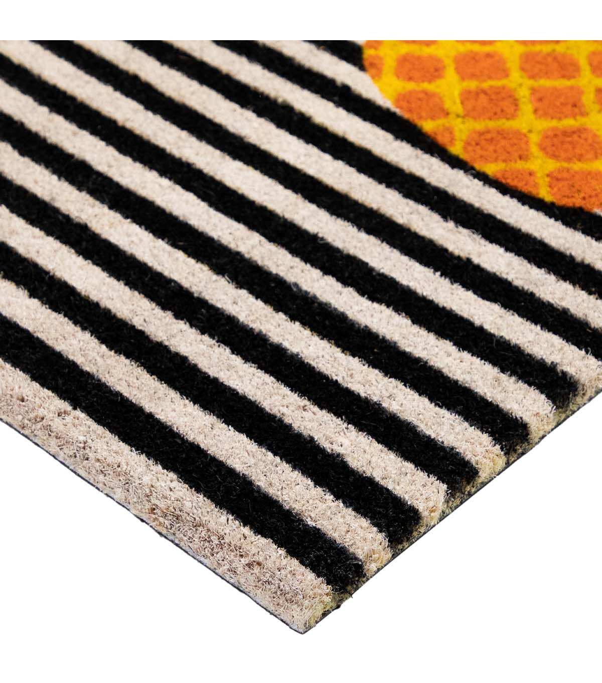 Northlight 18" x 30" Summer Orange Pineapple on Striped Coir Doormat