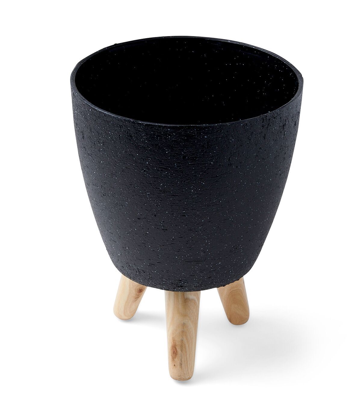 17" Spring Black Round Planter With Wood Legs by Place & Time
