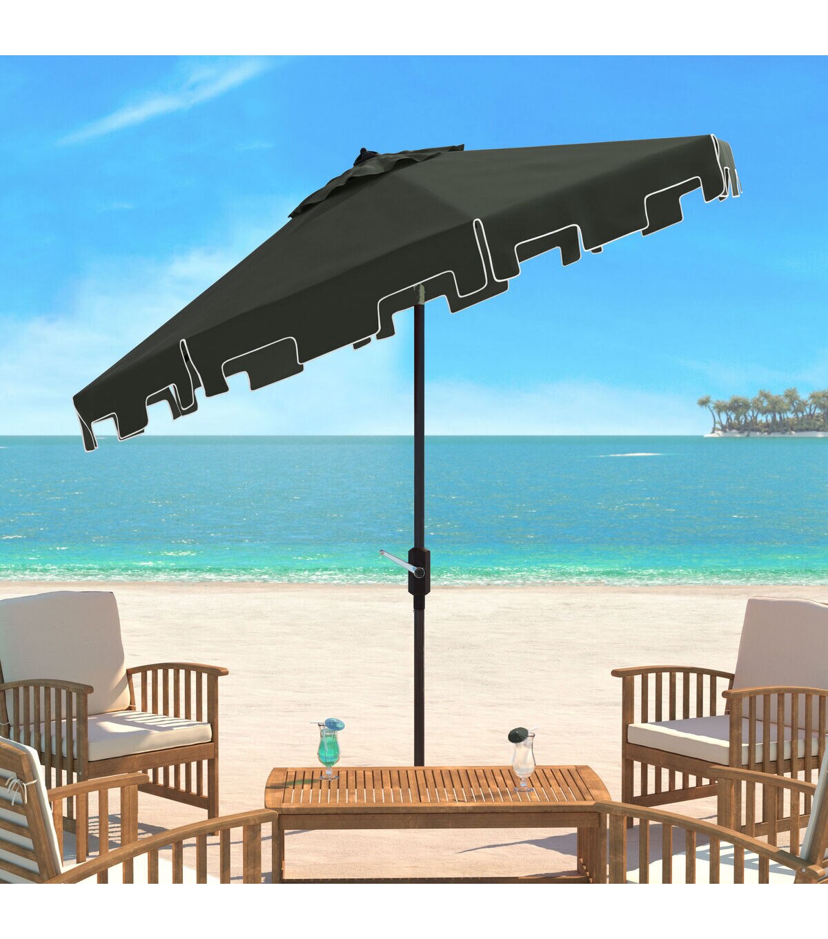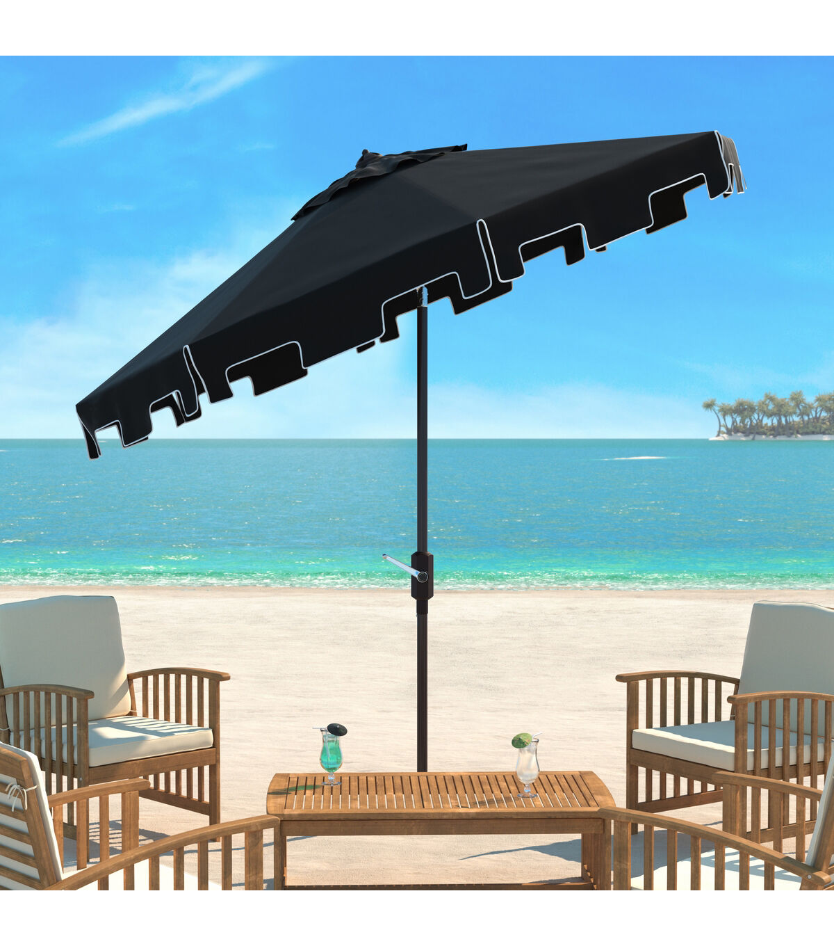 Safavieh 9' Zimmerman White & Black Push Button Tilt Patio Umbrella