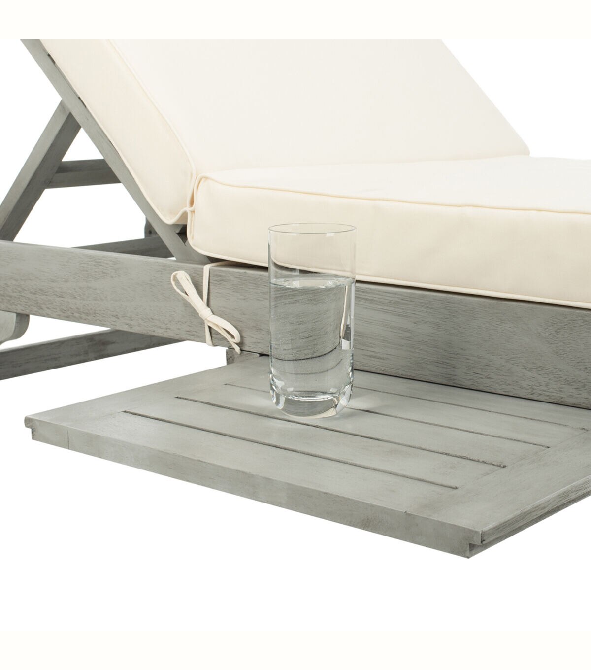 Safavieh 28" x 79" Biege Newport Outdoor Chaise Lounge With Side Table