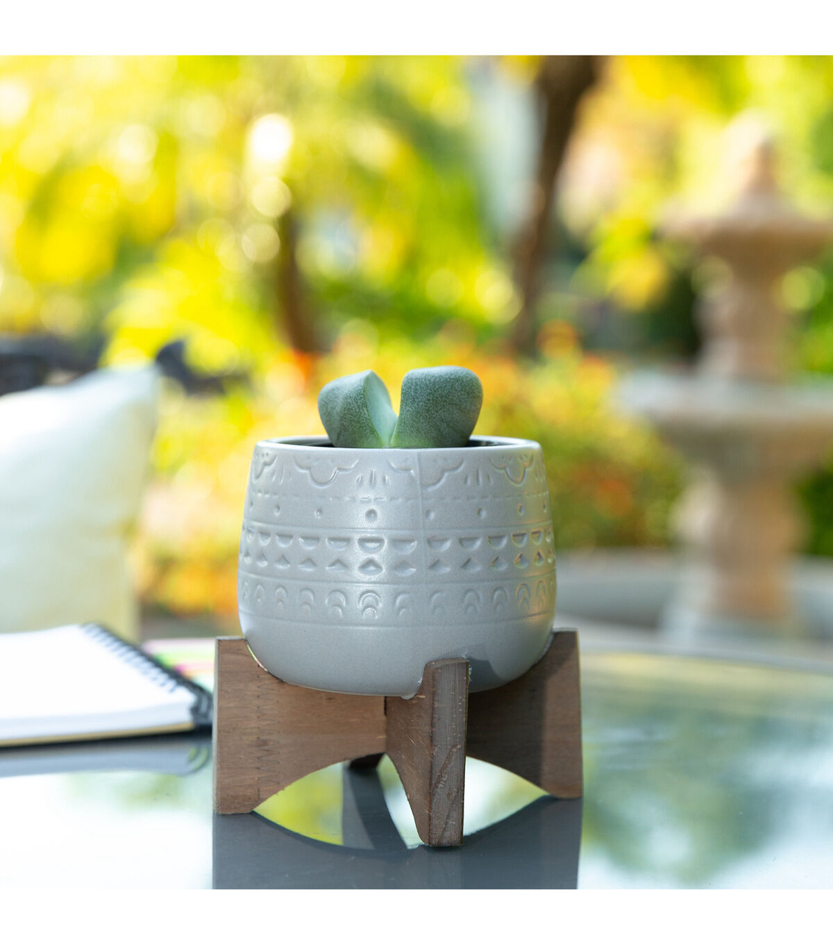 Flora Bunda 3.5" Gray Mayan Ceramic Planter on Stand