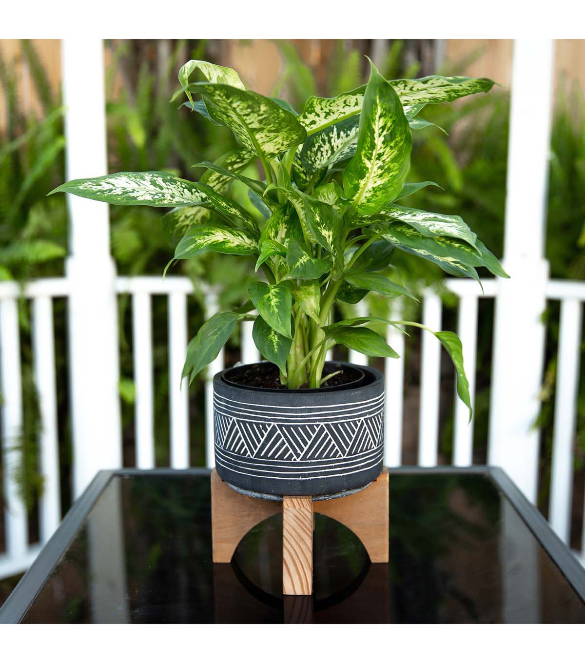 Flora Bunda 7" Mountain Cement Planter With Wood Stand