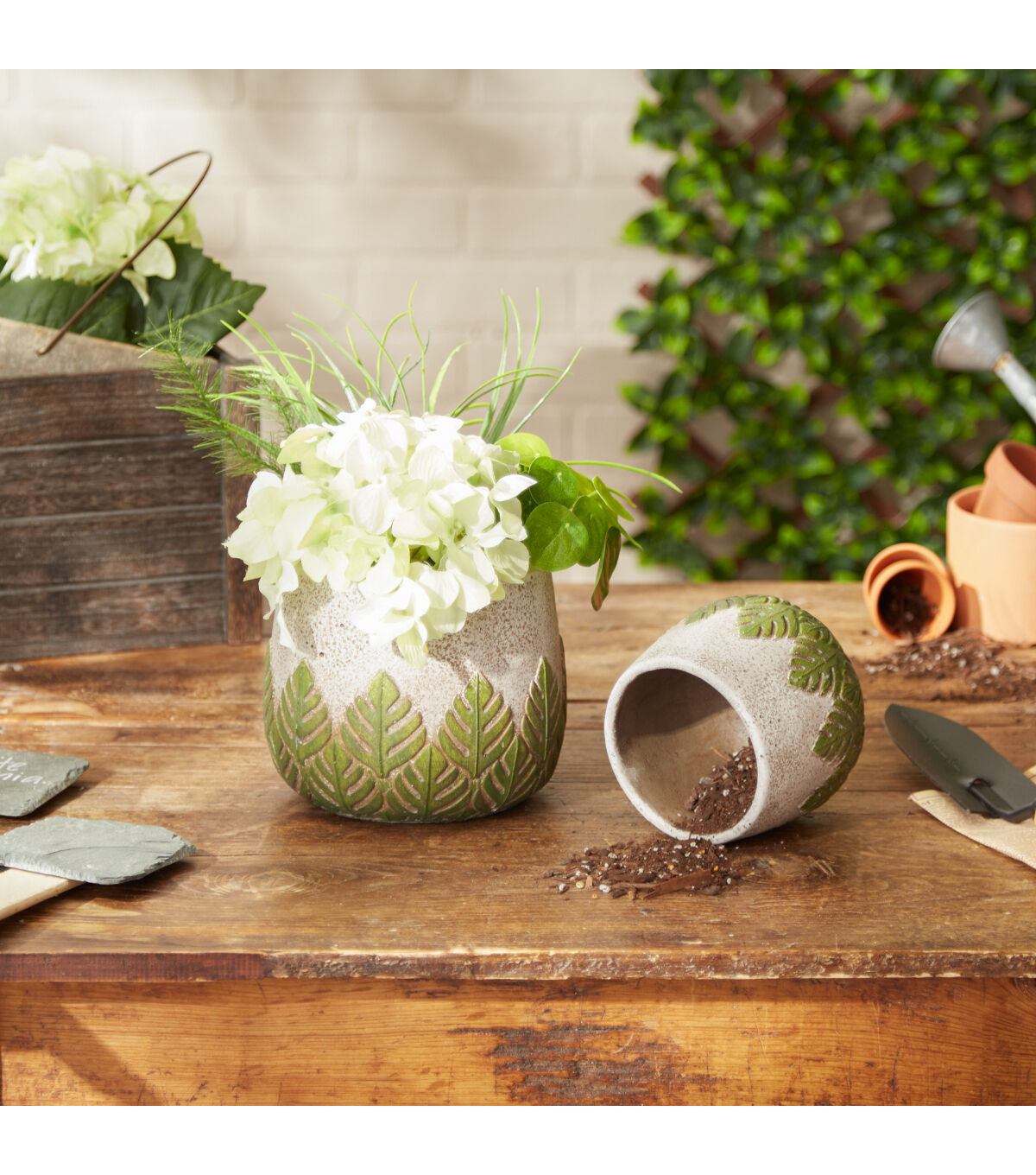 Zingz & Thingz 2ct Multi Sized Greek Leaves Cement Flower Pots