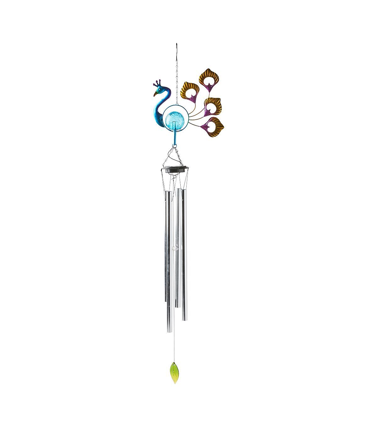43" Spring Blue Iron Peacock Solar Windchime by Place & Time