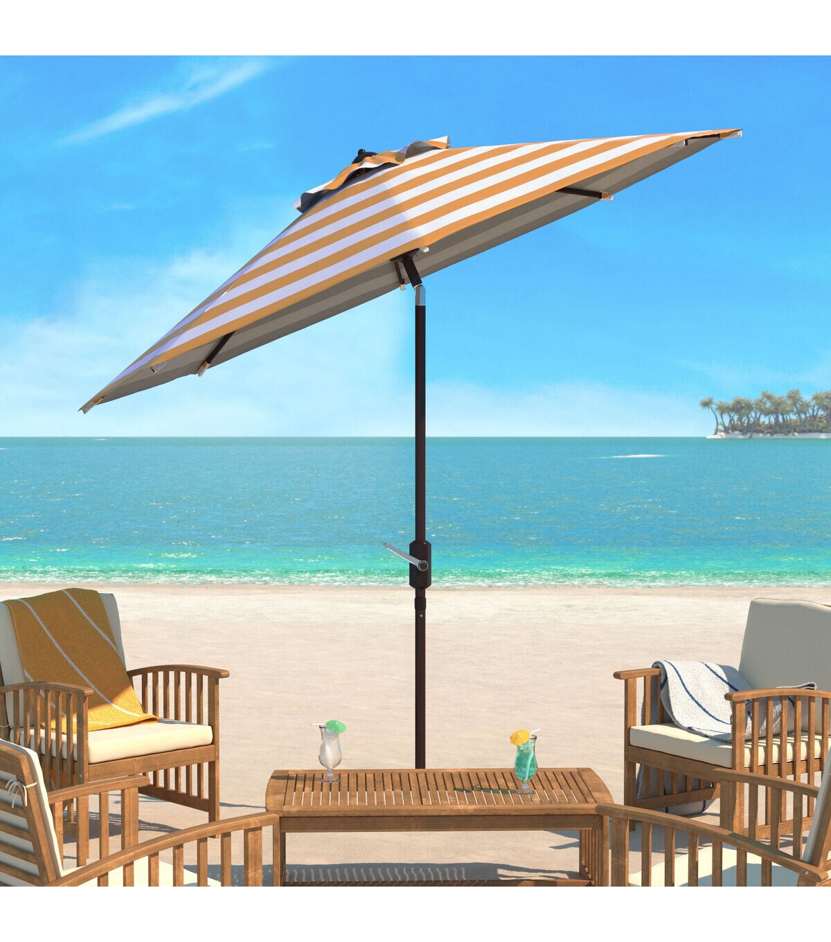 Safavieh 9' UV Resistant Orange & White Iris Auto Tilt Patio Umbrella