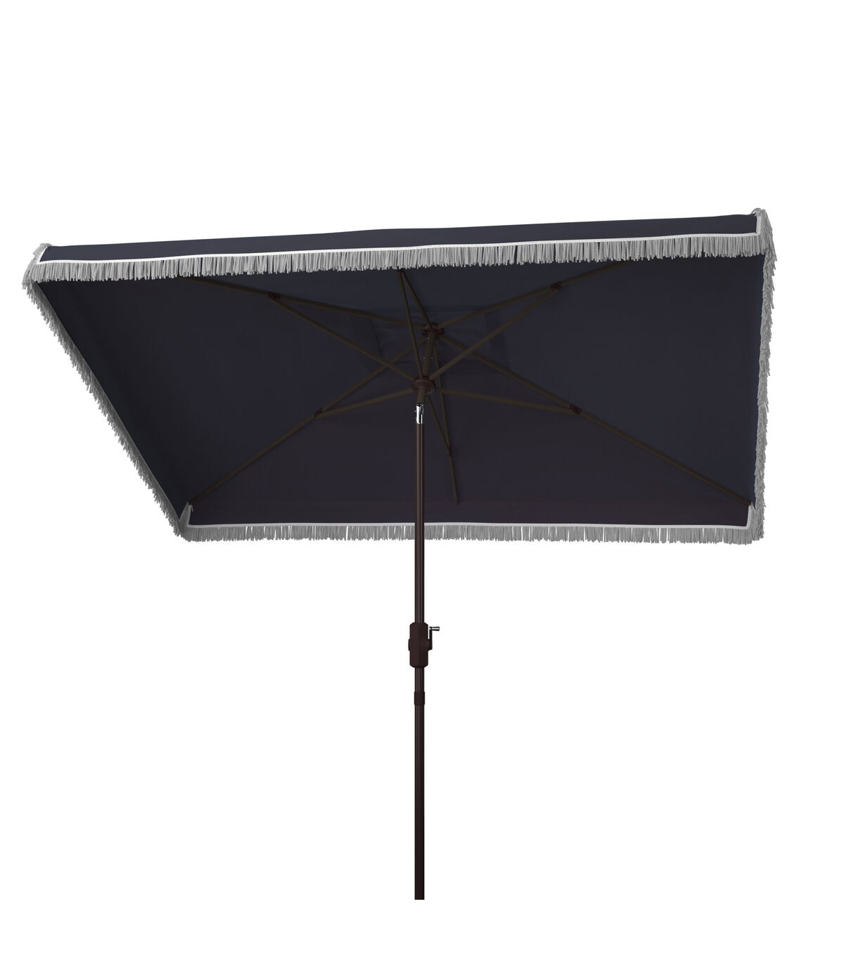 Safavieh 6.5' x 10' Navy Milan Fringe Rectangle Crank Patio Umbrella