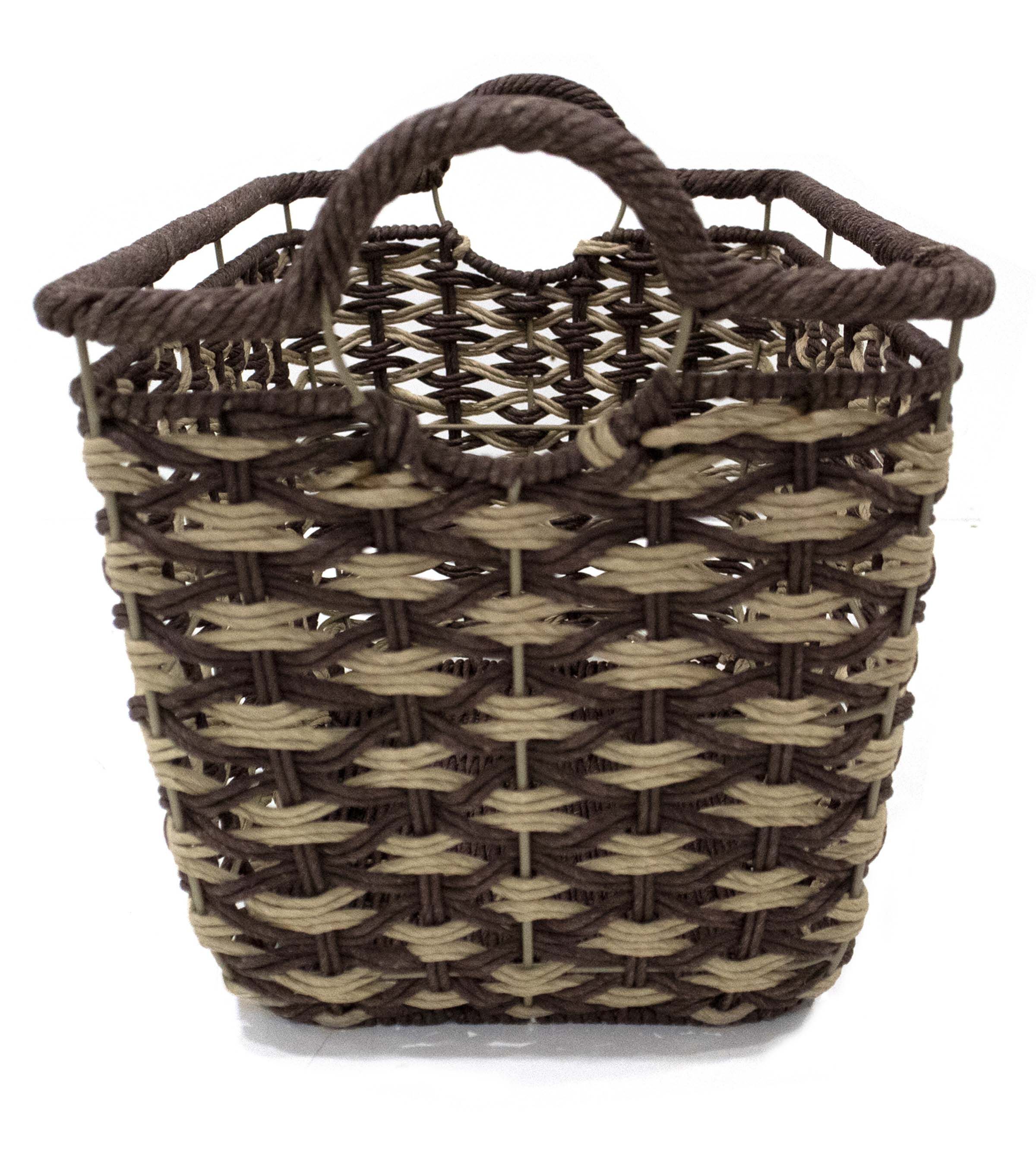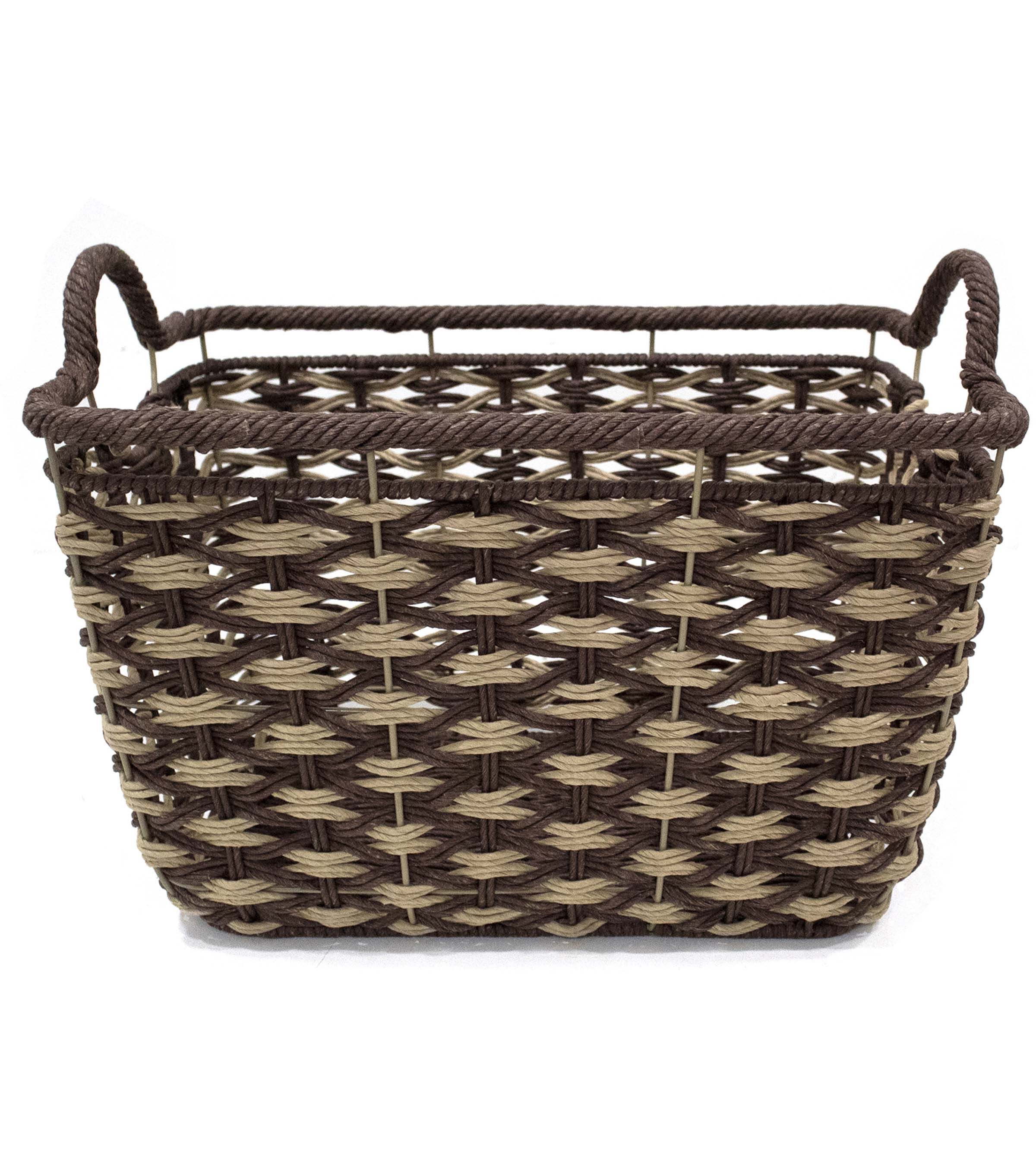 16.5" x 11" Dark Brown Woven Basket With Handles by Place & Time