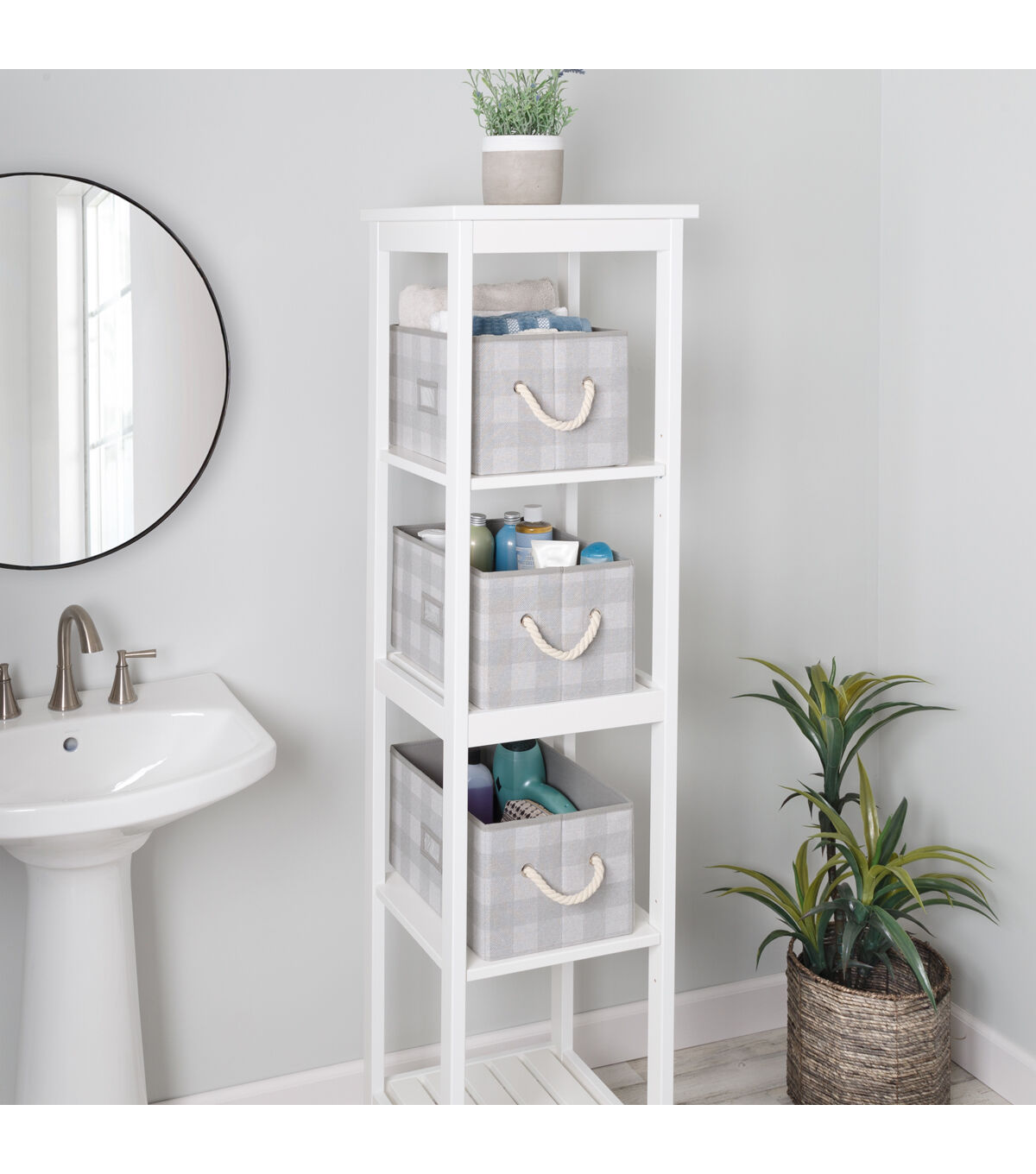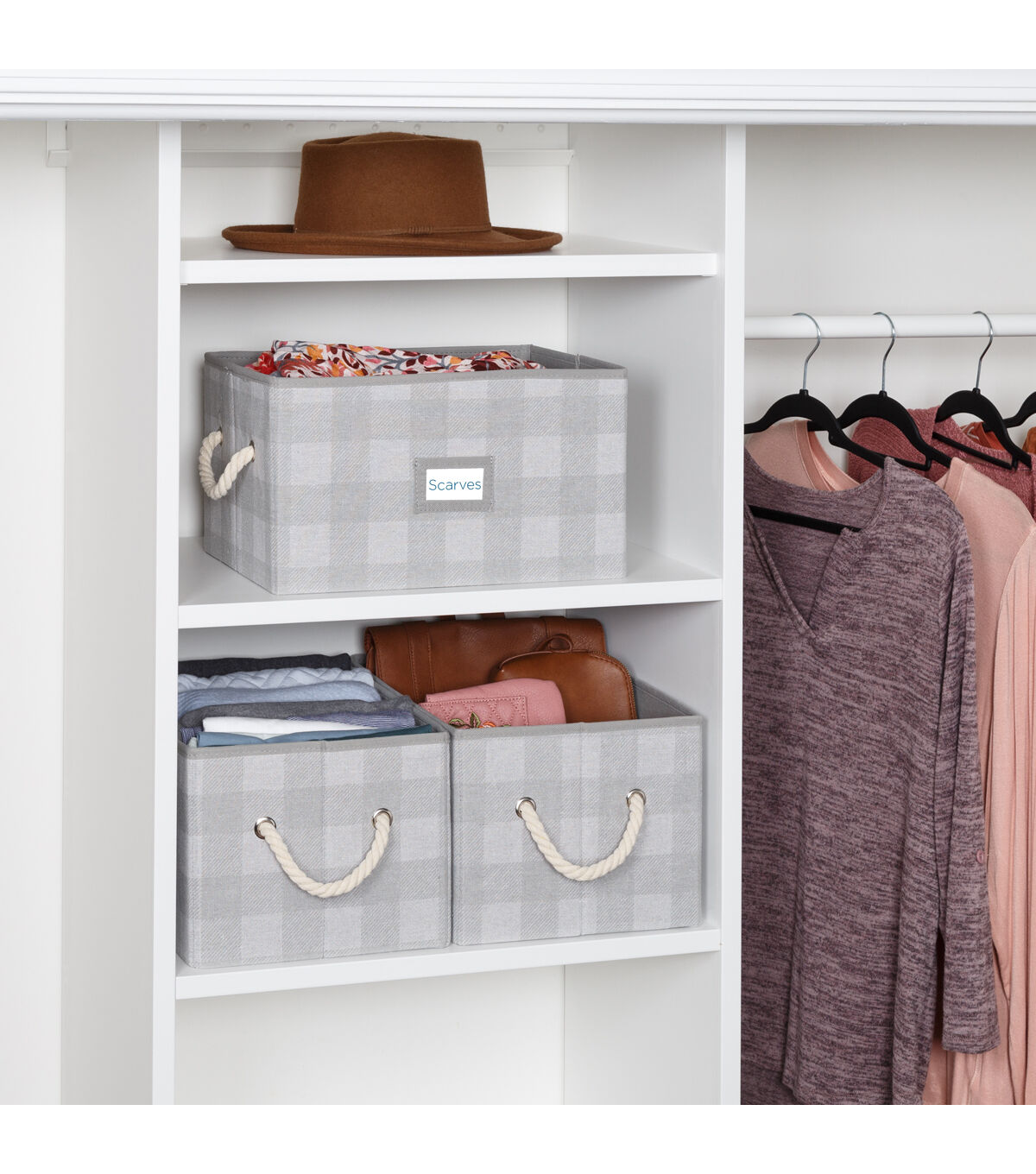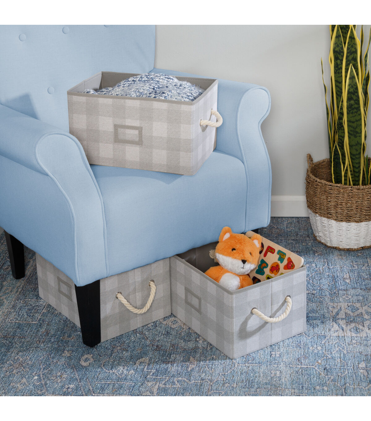 Honey Can Do 14.5" Gray Plaid Fabric Storage Bins With Handles 3pk