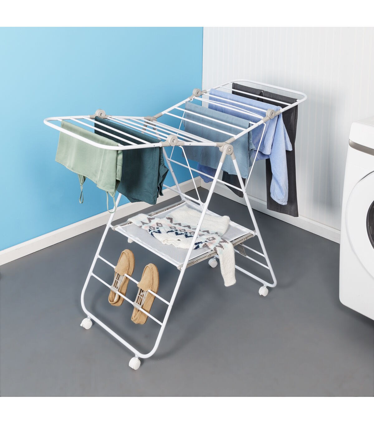 Honey Can Do 57" White Folding Gullwing Clothes Drying Rack With Wheels