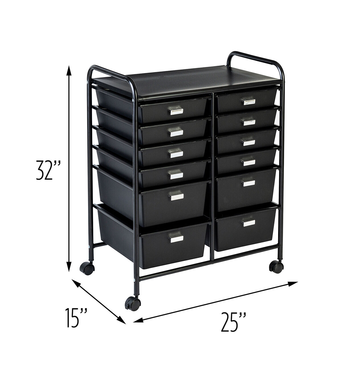 Honey Can Do 15" x 32" Black 12 Drawer Rolling Storage & Craft Organizer