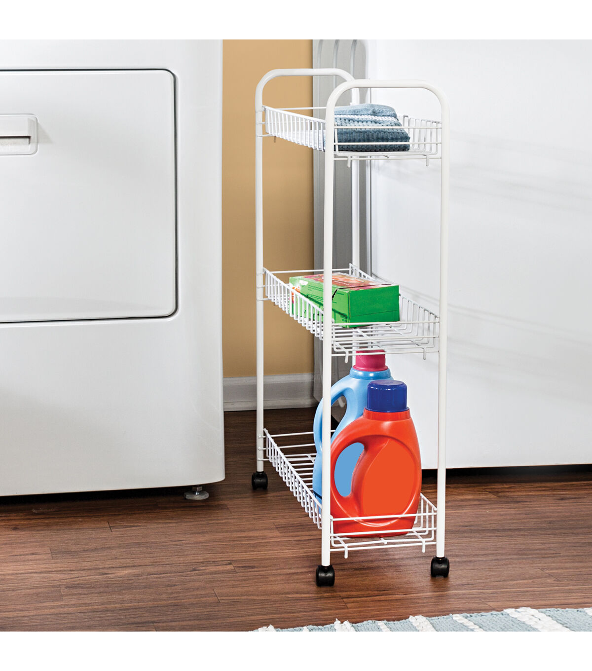 Honey Can Do 23" x 31" White 3 Tier Narrow Utility Storage Cart